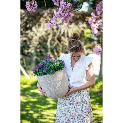 Dieser Designpflanzentopf von Capi aus der Waste Rib Kollektion wird CO2 neutral in den Niederlanden aus 100% Waste (gebrauchten Materialien) produziert. Der 35 x 34 cm große Übertopf wird aus Fischernetzen, gebrauchten Korken und recycelten Capi Töpfen produziert. Diese Kollektion ergreift Maßnahmen, übernimmt Verantwortung und nimmt sich dem größten, derzeitigen Waste-Problem (Müllproblem) an – den Fischernetzen. Diese Fischernetze werden mit alten Korken und recycelten Capi Töpfen kombiniert um sie wieder zu qualitativ hochwertigen Produkten mit funktionalem Design zu wandeln. Dieser Topf ist sowohl für den Indoor- als auch für den Outdoorbereich geeignet. Der Blumentopf ist 100% wasserdicht und daher perfekt für den Innenbereich geeignet. Wenn Sie den Blumentopf draußen verwenden möchten, stellen Sie sicher, dass Sie ein Drainageloch von mindestens 25 mm in den Boden bohren.