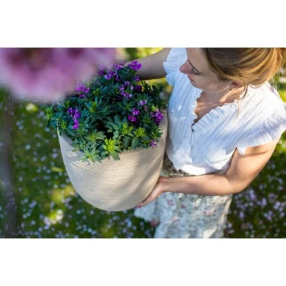 Dieser Designpflanzentopf von Capi aus der Waste Rib Kollektion wird CO2 neutral in den Niederlanden aus 100% Waste (gebrauchten Materialien) produziert. Der 43 x 41 cm große Übertopf wird aus Fischernetzen, gebrauchten Korken und recycelten Capi Töpfen produziert. Diese Kollektion ergreift Maßnahmen, übernimmt Verantwortung und nimmt sich dem größten, derzeitigen Waste-Problem (Müllproblem) an – den Fischernetzen. Diese Fischernetze werden mit alten Korken und recycelten Capi Töpfen kombiniert um sie wieder zu qualitativ hochwertigen Produkten mit funktionalem Design zu wandeln. Dieser Topf ist sowohl für den Indoor- als auch für den Outdoorbereich geeignet. Der Blumentopf ist 100% wasserdicht und daher perfekt für den Innenbereich geeignet. Wenn Sie den Blumentopf draußen verwenden möchten, stellen Sie sicher, dass Sie ein Drainageloch von mindestens 25 mm in den Boden bohren.