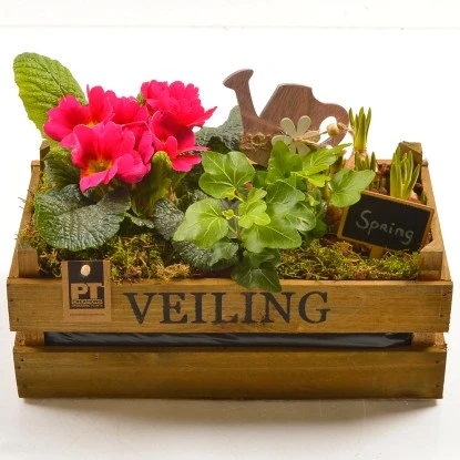 Diese mit einer Auswahl bunter Frühblüher bepflanzte Holzkiste verbreitet auf dem Balkon und der Terrasse oder vor der Tür ein frühlingshaftes Flair.