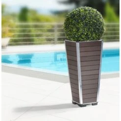 Das Pflanzkübel Polyrattan 2er Set eignet sich für den Innen- und Außenbereich und setzt dekorative Akzente im Haus, auf der Terrasse oder im Garten. Die Pflanzgefäße sind mit hochwertigem PE-Kunststoffgeflecht hergestellt, das über einen rostbeständigen Alu-Rahmen gewebt ist. Die Faser ist UV- und temperaturbeständig, langlebig und pflegeleicht. Die Kunststoffeinsätze können bequem außerhalb des Gefäßes bepflanzt und dann eingesetzt werden und bieten auch für größere Pflanzen ausreichend Platz. Gegenüber Einsätzen aus anderen Materialien bietet dieser den Vorteil, nicht zu rosten und absolut wasserdicht zu sein. Bei Außenaufstellung einfach ein Loch in den Boden bohren, um Staunässe zu vermeiden.