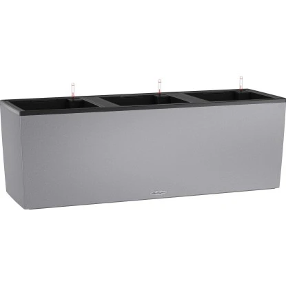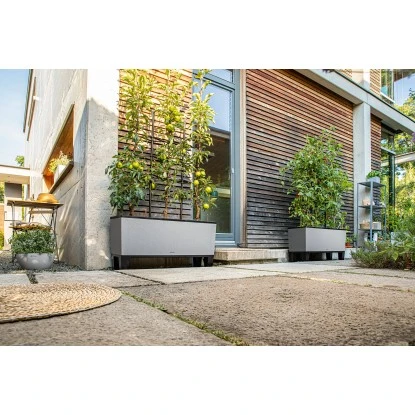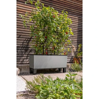 Das Lechuza Pflanzgefäß Trio Stone 40 Steingrau 130 cm x 42 cm besticht mit seinen drei separat bepflanzbaren Einsätzen. Für Gärten, Terrassen oder größere Balkone bietet sich Trio Stone als dekorativer Sichtschutz oder als Mini-Beet für rankende Obst- und Gemüsesorten an. In angesagter Natursteinoptik kann Trio Stone dezent im Hintergrund gehalten werden oder als Blickfang fungieren. Das optionale Zubehör „Lechuza Trio Rankgitter“ (nicht im Lieferumfang enthalten) sorgt für Stabilität von rankenden Pflanzen und ist die perfekte Ergänzung. Außerdem zusätzlich erhältlich ist das optionale Zubehör „Lechuza Trio Sockel“ (nicht im Lieferumfang enthalten) für einen höheren Stand.