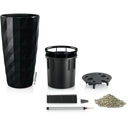 Die Pflanzsäule Diamante Premium von Lechuza in der Farbe Schwarz hat einen Durchmesser von 40 cm. Sie besticht mit ihrer brillanten Oberfläche, die an einen geschliffenen Diamanten erinnert. Das ist Design auf höchstem Niveau kombiniert mit Funktionalität und Qualität – und zeichnet dieses Pflanzgefäß aus. Die Pflanzsäule ist ein Designstatement mit ihren lebhaften Spiegelungen und passt dank ihrer Vielfalt in die verschiedensten Wohnkonzepte. Der wechselbare Pflanzeinsatz mit versenkbarem Griffrahmen sowie das bewährte Lechuza-Bewässerungssystem machen den Diamante zu einem einzigartigen und vielseitigen Pflanzgefäß.