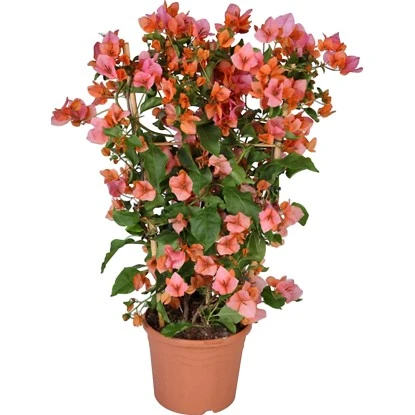 Die OBI Living Garden Drillingsblume (Bougainvillea) gehört zu der Familie der Wunderblumengewächse. Sie ist eine farbenprächtige, kletternde Pflanze die in südlichen Ländern weit verbreitet ist. Die Blüten sind von leuchtend bunten Hochblättern umrahmt, die aufgrund Ihrer Farbigkeit oft für Blütenblätter gehalten werden. Die Pflanze Bougainvillea benötigt nicht übermäßig viel Wasser. Der Standort sollte so sonnig wie möglich gewählt werden.
