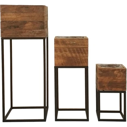 Das Pflanzgefäß auf festem Gestell hat schwarze Füße aus Metall und einen Topf aus Holz. Das dunkle Holz wirkt edel und ist ein echter Hingucker in Ihrem Garten. Mit bunten Blumen bepflanzt kommt der Topf auf dem standfesten Gestell gut zur Geltung.