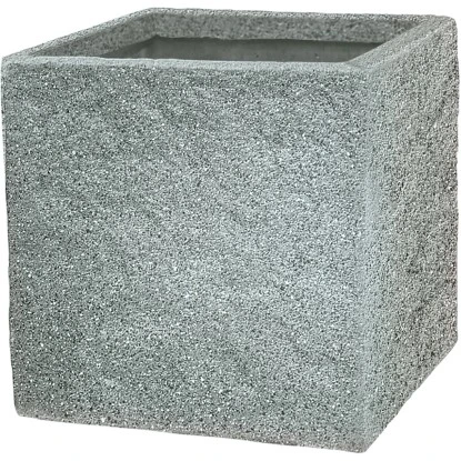 Optisch überzeugt das Pflanzgefäß mit einer eckigen Form und glatten Oberfläche. Eine schlichte Farbwahl in Hellgrau rundet das moderne Design ab. Für seine Herstellung wird Fibreclay verwendet, der wie Naturstein aussieht. Das Material ist pflegeleicht, abwaschbar und zeichnet sich durch ein geringes Gewicht aus. Versehen ist das Gefäß mit einem Bodenloch, durch das überschüssiges Wasser ablaufen kann. Mit seinen frostbeständigen Eigenschaften bis zu -10 °C eignet es sich zur Überwinterung im Außenbereich, wenn Sie darauf achten, dass sich keine Staunässe im Topf ansammeln kann. Das Pflanzgefäß hat die Maße 29 cm x 30 cm x 30 cm (H x B x T).