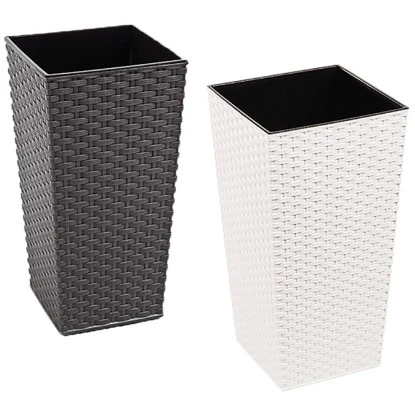 Das Pflanzgefäß ist durch seine schlichte und zeitlose Gestaltung sowie der Rattanoptik aus dem Garten nicht wegzudenken. Das Gefäß ist In- und Outdoor geeignet und verfügt über eine sehr gute Qualität, durch welches dieses witterungs- und UV-beständig ist. Außerdem verfügt das Pflanzgefäß über Vorbohrungen für Wasserablauflöcher.